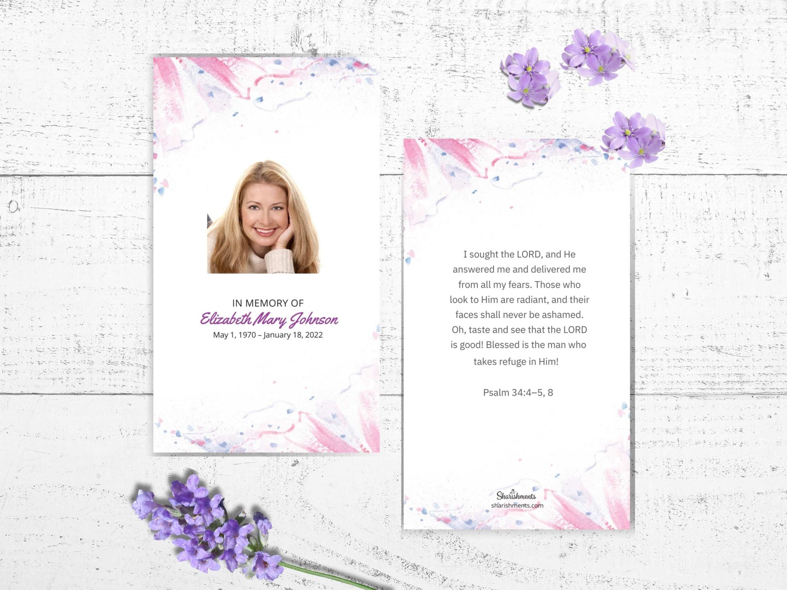 Create a special keepsake for your loved one’s service with our Butterfly Watercolor Memorial Program. This easy-to-use template lets you make a program that guides guests through the day and celebrates a life well-lived.